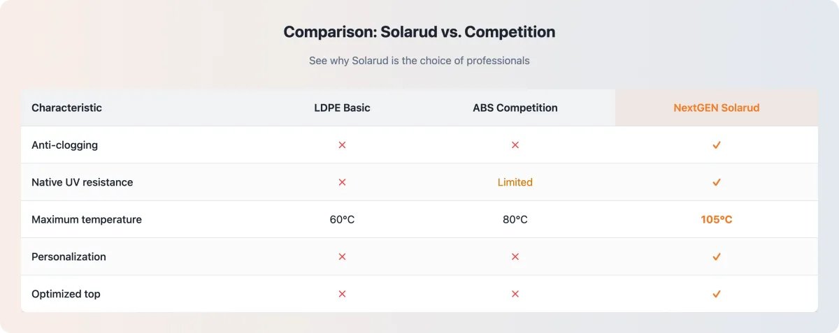 Solarud isn’t just a low-cost clip, it’s a patented, engineered system designed to solve real O&M issues. Unlike generic clips, Solarud offers native UV protection, anti-clogging design, and performance tested in utility-scale installations. The ROI justifies the investment.